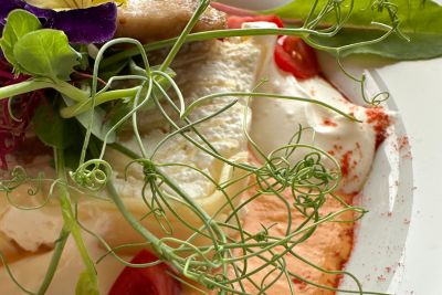 Vegán zöldségkrémmel töltött ravioli, padlizsán ragu