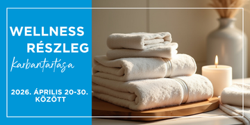 • 2026. április 26-30. között a medencetér karbantartása zajlik, ez idő alatt a szaunarészleg és a masszázsszolgáltatás zavartalanul üzemel.